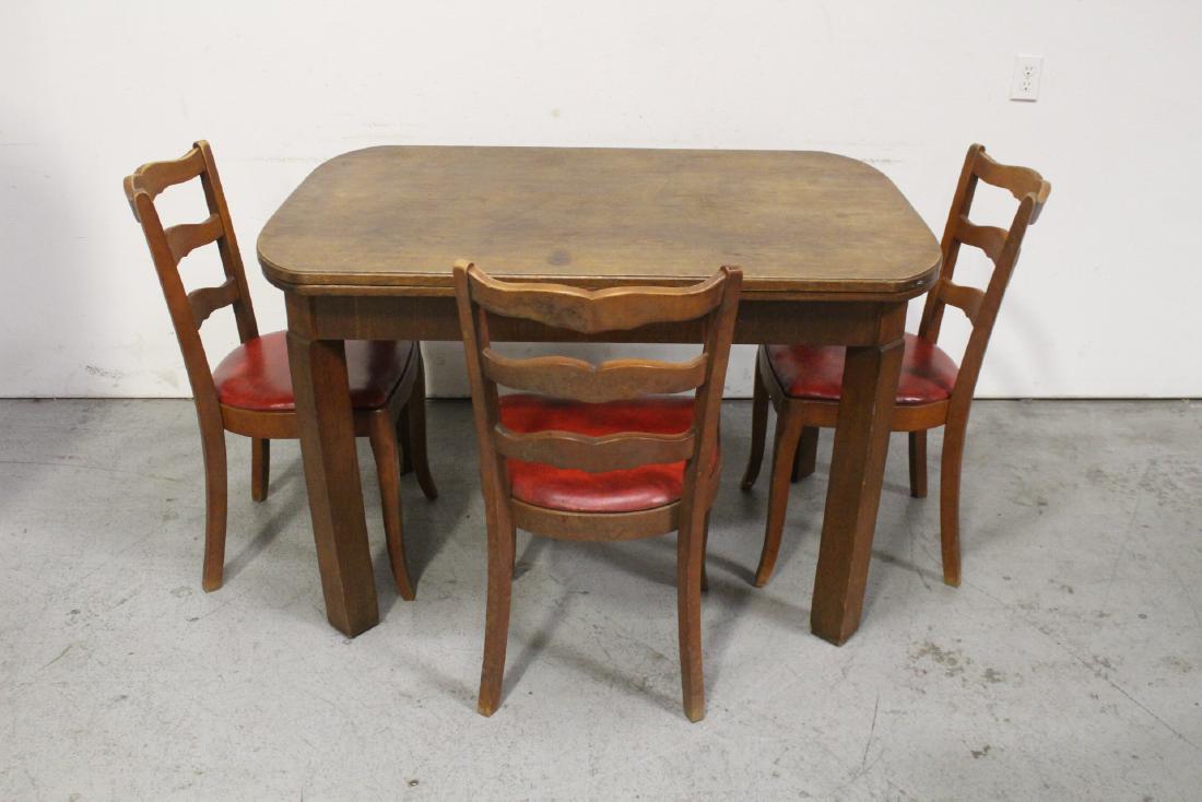 Antique Oak Dining Table W Built In Leaf 4 Chairs Aptdeco