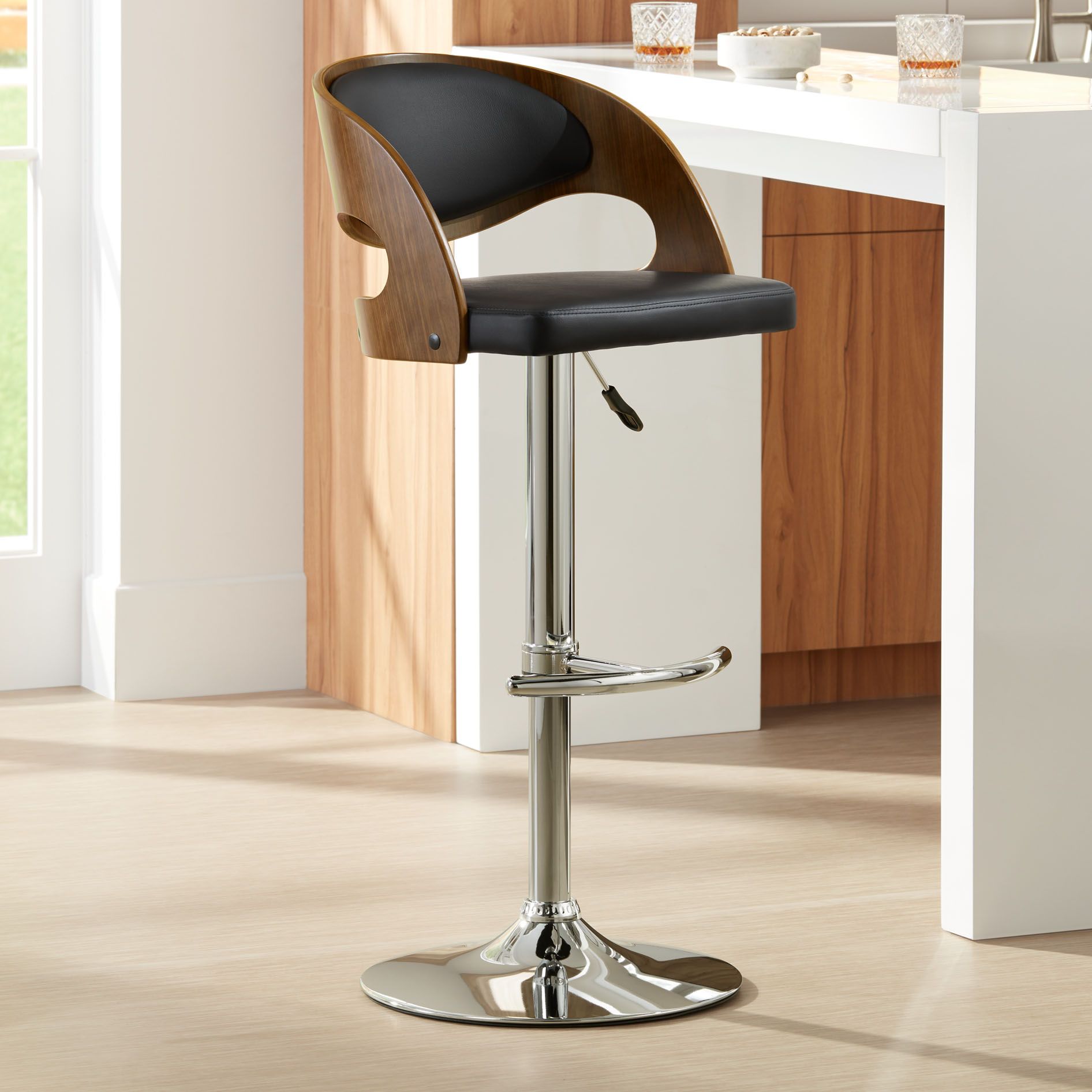 Nicer Furniture Faux Leather Air Lift Adjustable Metal Bar Stool