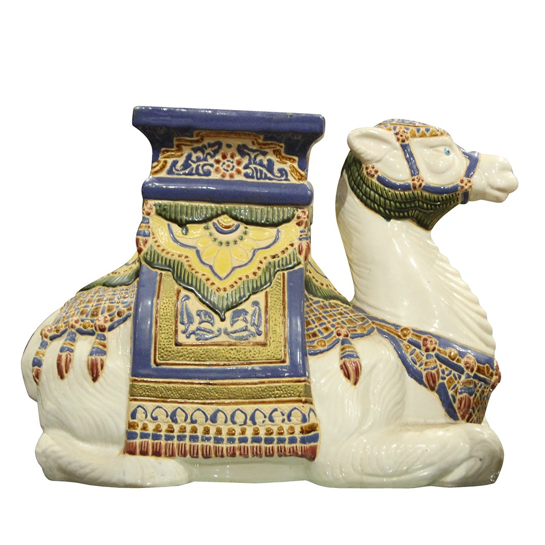 Patio Decoration Ceramic Hollywood Regency Camel Garden Stool Or