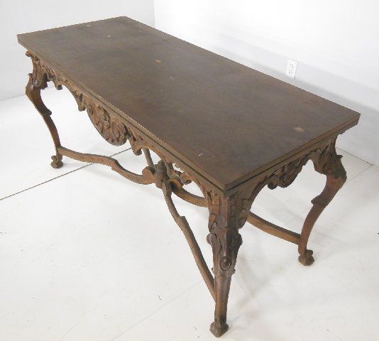 Italian Antique Carved Walnut Dining Library Or Hall Table