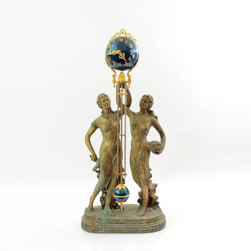 Clocks for sale ansonia fisher falconer swing clock. A pendulum swings behind the figurine and ball. Huntress ball swing the huntress figure on these clocks is holding a ball containing the clock face in the air.