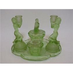 Uranium Green Art Deco Glass Dressing Table Set Green Art Deco
