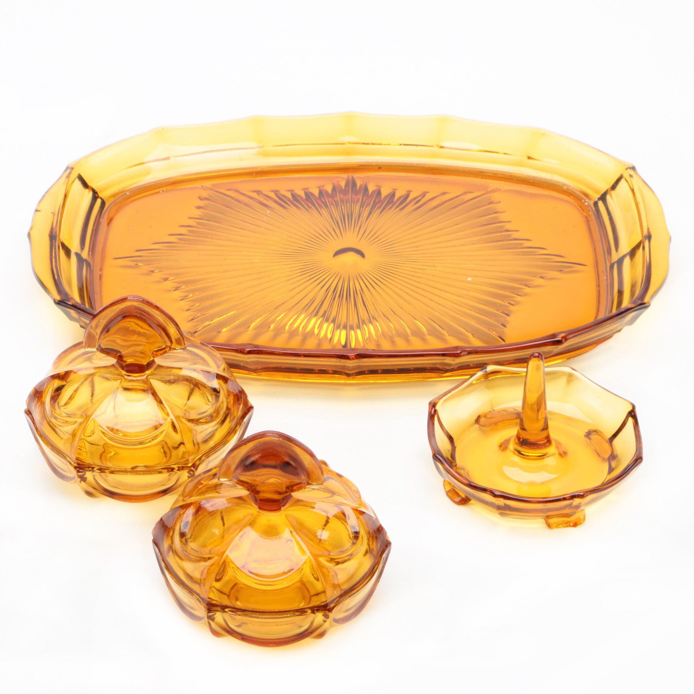 Art Deco Style Amber Glass Vanity Dressing Table Set Circa 1940s