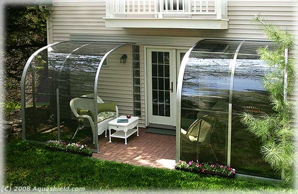 Aquashield sunroom. Aqua shields unique patented design allows our sunroom to open or close over your patio in seconds letting you enjoy the benefits of summer all year round. Quality and engineering. Aquashield hard top enclosure collapses in iowa.